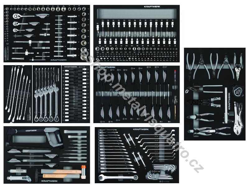 - 351 dílná základní sestava nářadí uložena ve 4 zásuvkách